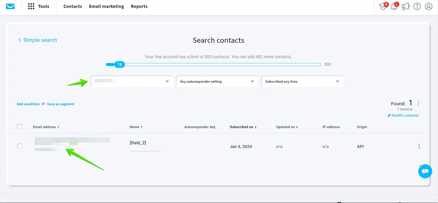 8. If the test is successful, the test email will appear in the list of subscribers.