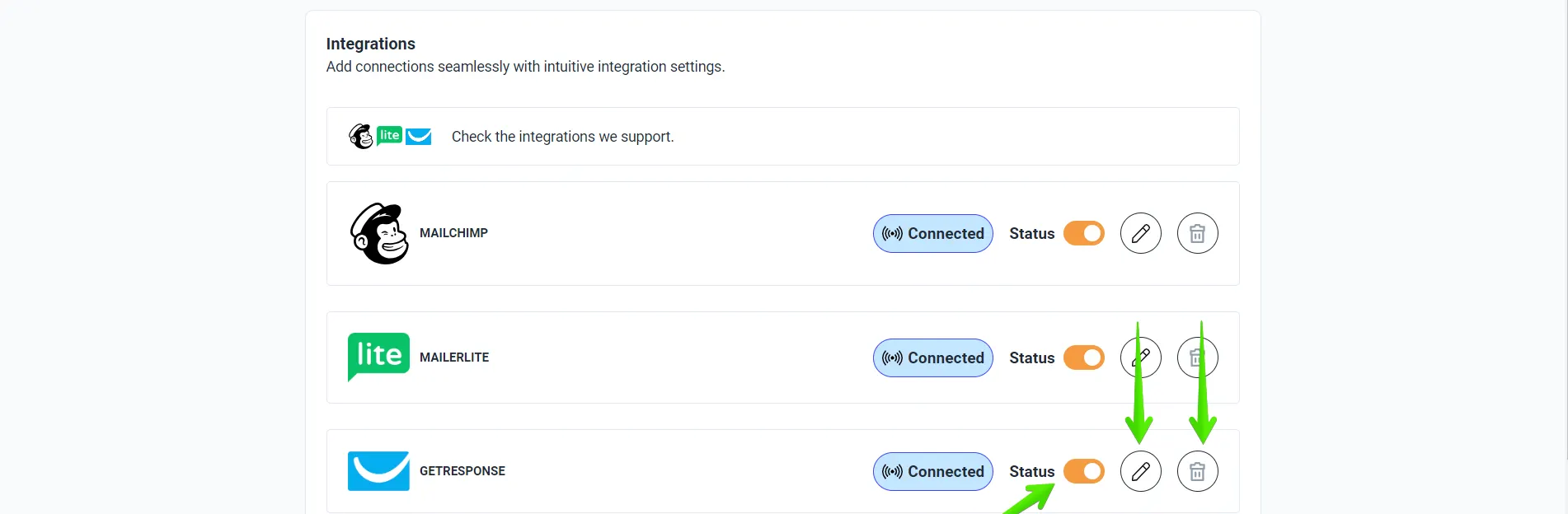 After you click on the “Save” button, your integration is ready, and it is ON by default.